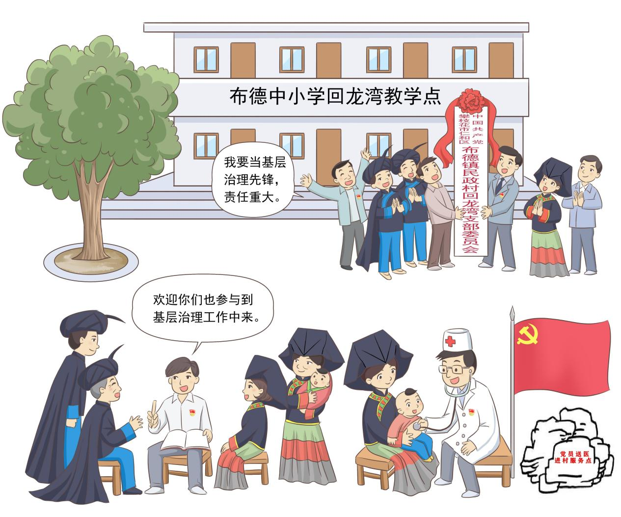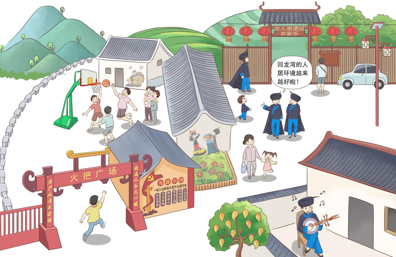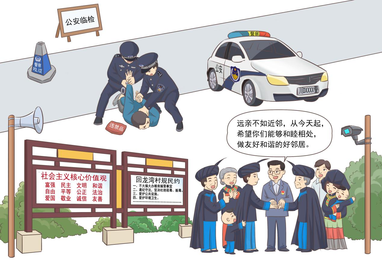回龙湾基层治理工作坚持以党的领导为核心,通过“法治为本、自治强基、德治润心、智治赋能、共治协商、心治安民”6条扎实有效的具体路径,重拳打击违法犯罪,深入开展辑枪治爆、禁毒治乱等专项行动。同时,党支部主动发力,探索“一约两会三制”基层治理办法(即一个村规民约,红白理事会、村民议事会,宣传发动“双语制”、村级治理“网格制”、矛盾化解“头人制”),构建具有地域民族特色的基层治理办法。
