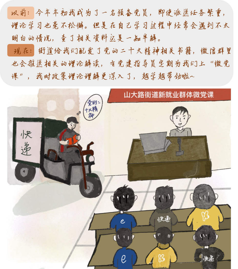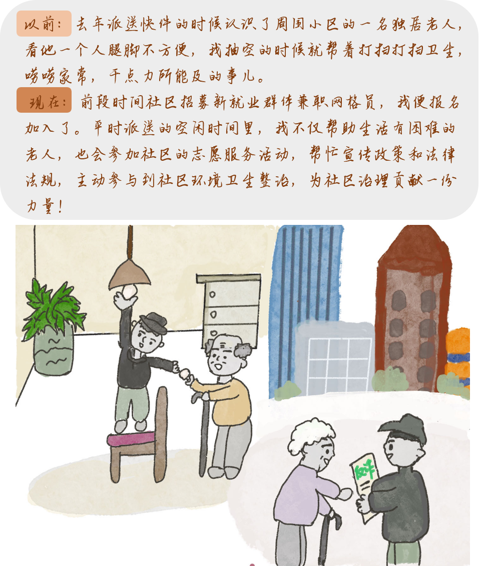 大家好,我是服务于山东省济南市历城区山大路街道辖区的快递骑手“山小新”, 最近我的工作和生活都发生了极大的变化, 一起来看看我的“以前”和“现在”有什么不一样吧。