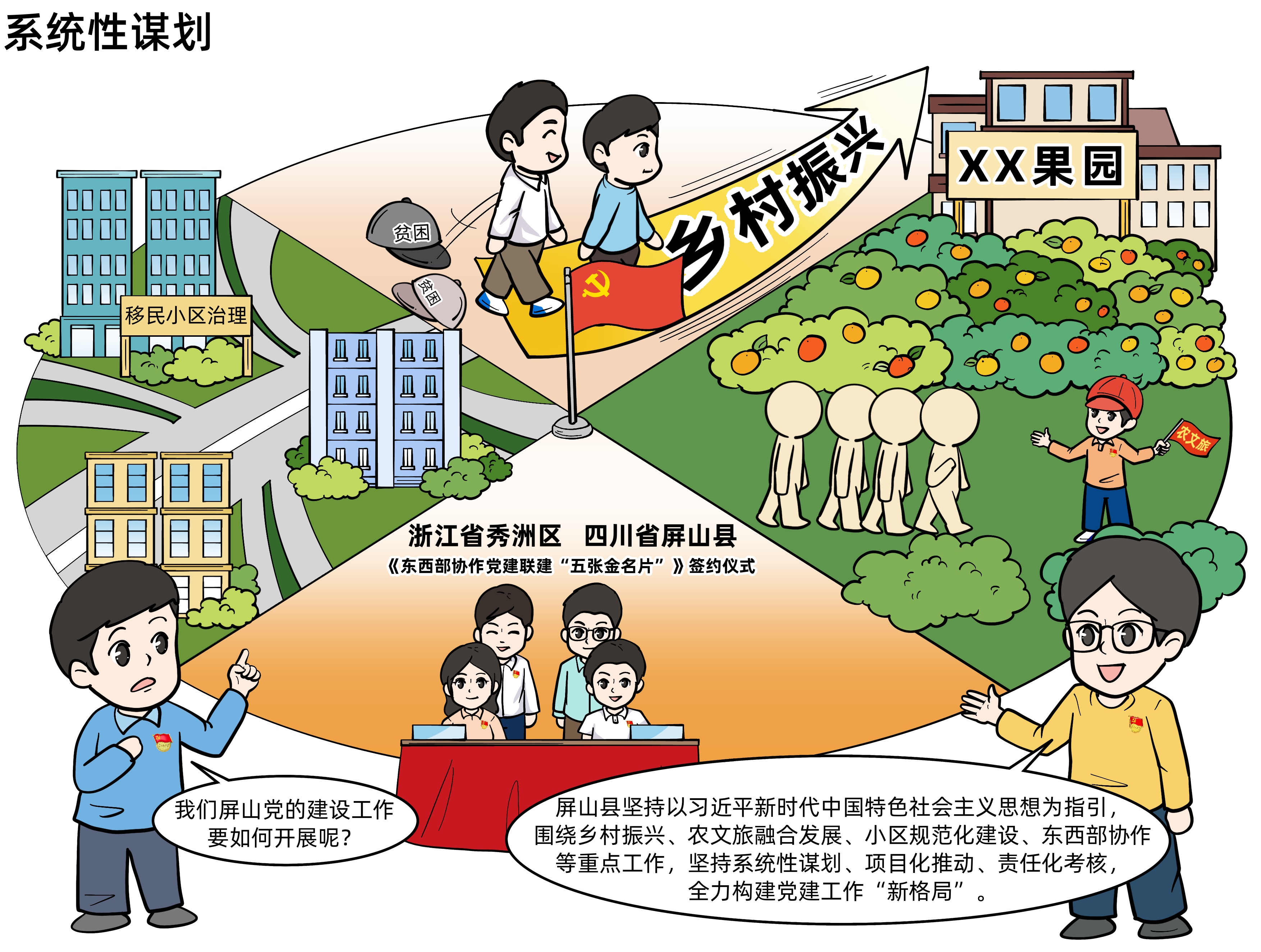 办好农村的事情,实现乡村振兴,关键在党。习近平总书记在党的二十大报告中强调,“坚持大抓基层的鲜明导向,抓党建促乡村振兴”。2023年,四川省宜宾市屏山县深入贯彻落实新时代党的建设总要求和新时代党的组织路线,坚持“政治统领、服务大局、提质增效、守正创新”的工作思路,系统性谋划、项目化推动、责任化考核,以高质量基层党建引领助力乡村振兴高质量推进。